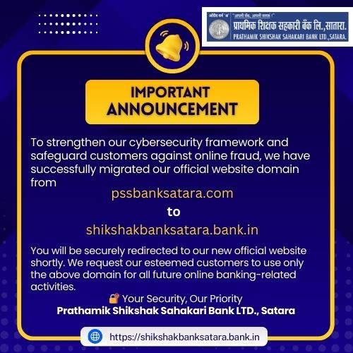 यानंतर दि. १७ एप्रिल १९४८ रोजी संस्थेची विभागणी उत्तर व दक्षिण सातारा होवून जिल्ह्यातील कराड व पाटण तालुके वगळून २ तालुक्यांसाठी "सातारा जिल्हा लोकल बोर्ड उत्तरभाग प्राथमिक शिक्षकांची सह. बँक लि., सातारा" या नावाने कामकाजास सुरुवात झाली. पुढे काळाचे ओघात नवनवीन बदल होत गेले व दि. १७-१०-८१ रोजी "प्राथमिक शिक्षक सहकारी बैंक लि., सातारा" असे सुटसुटीत व नवे नाव बँकेने धारण केले. सध्या संपूर्ण सातारा जिल्हा कार्यक्षेत्र करणेत बँक यशस्वी झाली आहे. सातारा जिल्ह्यामध्ये बँकेच्या १३ शाखा व हेड ऑफिस असे कार्यक्षेत्र आहे.
